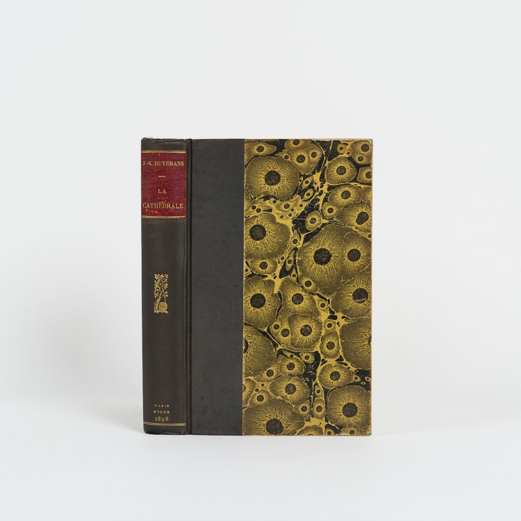 JORIS-KARL HUYSMANS. La Cathédrale. Paris, P.-V. Stock, 1898. In-8 (185 x 115 mm), demi-percaline noire à la Bradel, plats de papier marbré à œil de chat, dos lisse orné d’un décor de vanité, non rogné, couvertures et dos conservés (reliure de l’époque).
