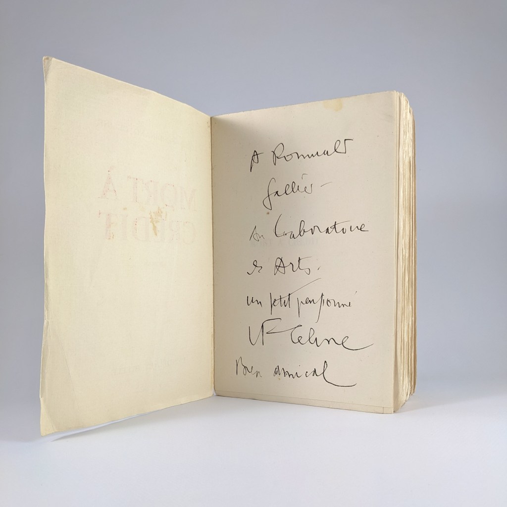 Formidable envoi à une personnalité essentielle des débuts de l’auteur. L’exemplaire est cité avec reproduction dans L’année Céline, 2010, p. 26.